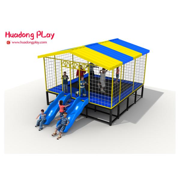 Combined Trampoline Park Equipment , 25 Sqm Square Trampoline With Slide Roof